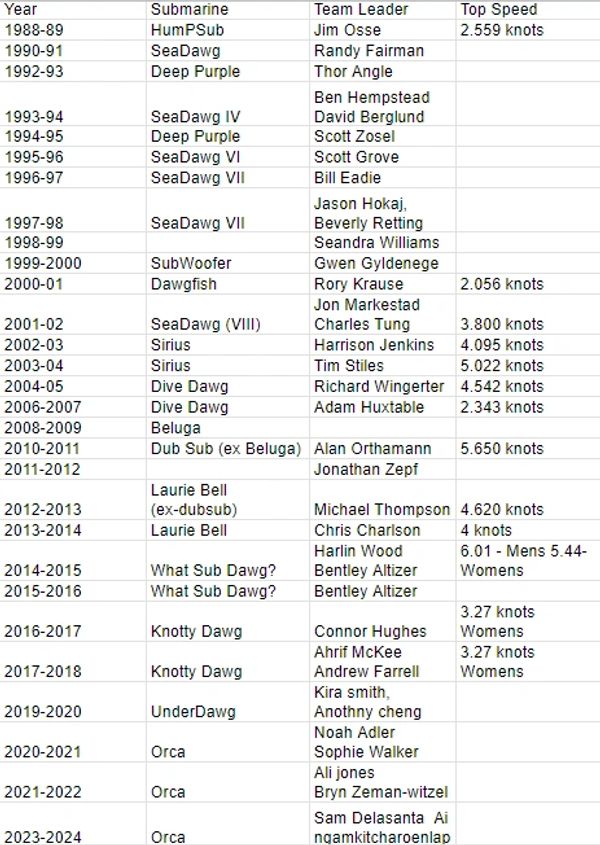 We run on a two year design cycle meaning new subs are built every two years before the International Submarine Races